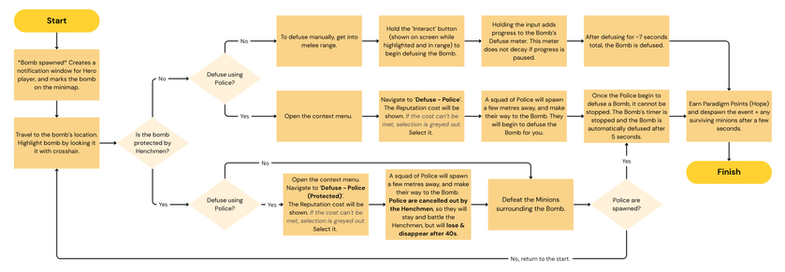 This example system of emergent gameplay and counterplay is designed to provide satisfactory benefits and worthy trade-offs, whilst allowing the players enough agency to play the scenario their way. This philosophy is the driving force around all events and objectives, with the primary goal being to create a series of tactical choices that also feel immersive to the Superhero/Supervillain fantasy.